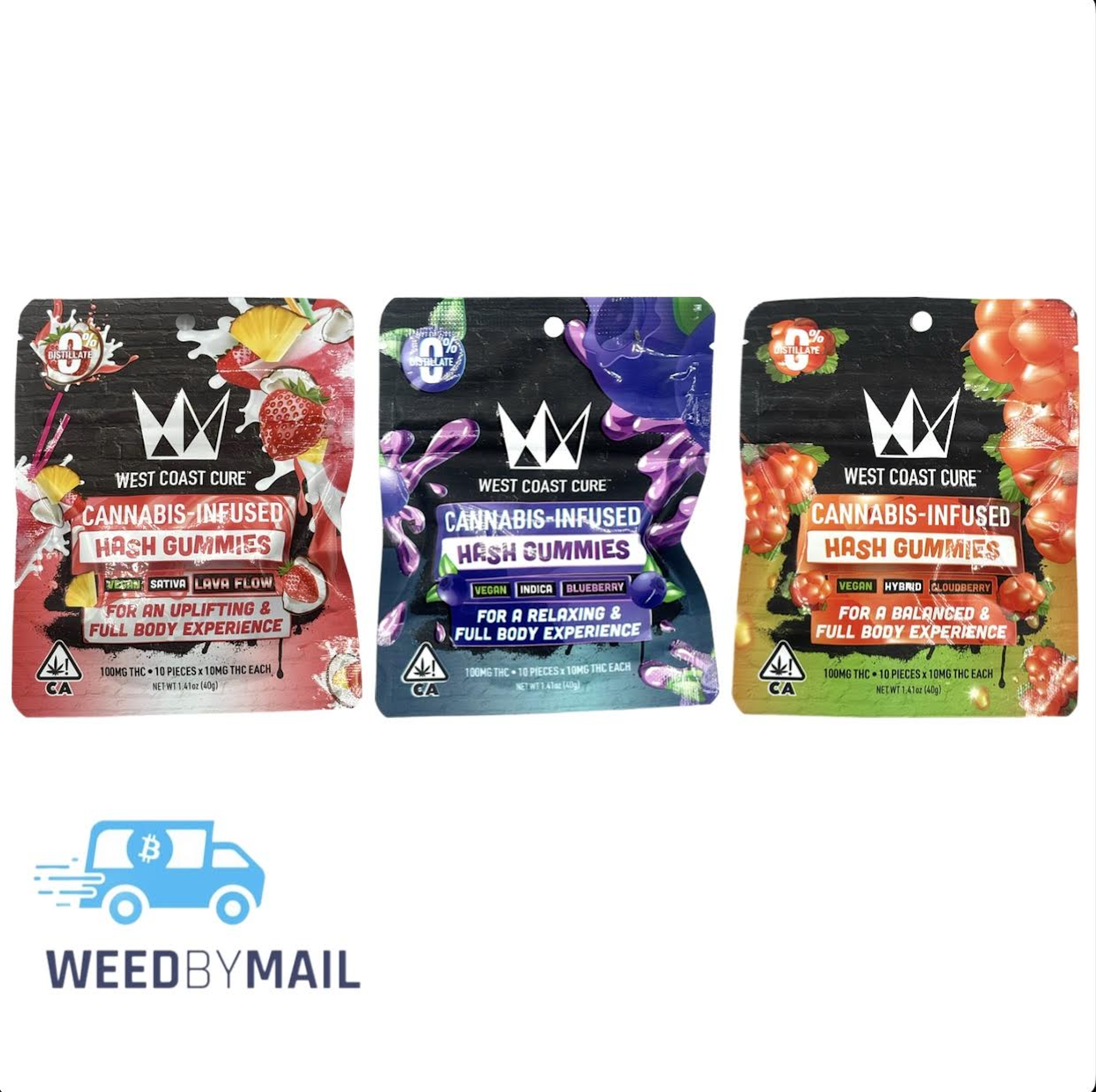 West Coast Cure vegan hash gummies are vegan, solventless edibles made with live ice water hash for a natural, full-spectrum effect